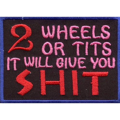 Biker Patch '2 WHEELS OR TITS IT WILL GIVE YOU SHIT' Sew or Iron On With Adhesive Backing
