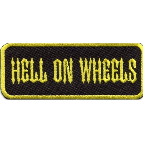 Biker Patch 'HELL ON WHEELS' Sew or Iron On With Adhesive Backing