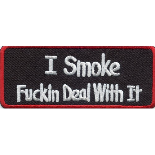 Biker Patch 'I SMOKE FUCKIN DEAL WITH IT' Sew or Iron On With Adhesive Backing