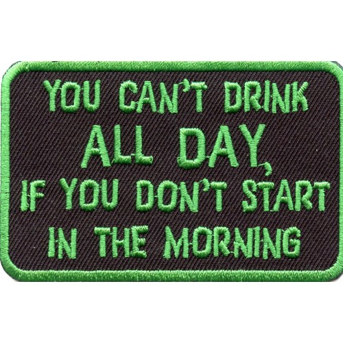 Biker Patch 'YOU CAN'T DRINK ALL DAY, IF YOU DON'T START IN THE MORNING' Sew or Iron On With Adhesive Backing