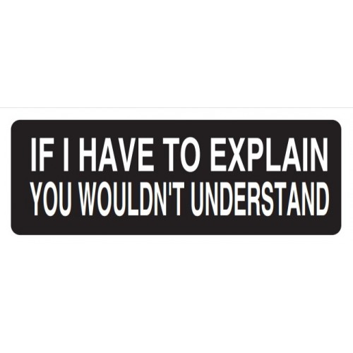 Helmet Sticker 'IF I HAVE TO EXPLAIN YOU WOULDN'T UNDERSTAND' White Bold Letters on Black Background.
