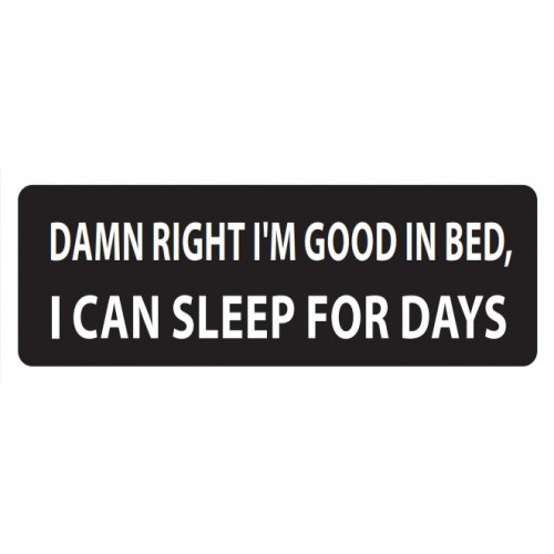 Helmet Sticker 'DAMN RIGHT I'M GOOD IN BED. I CAN SLEEP FOR DAYS'.