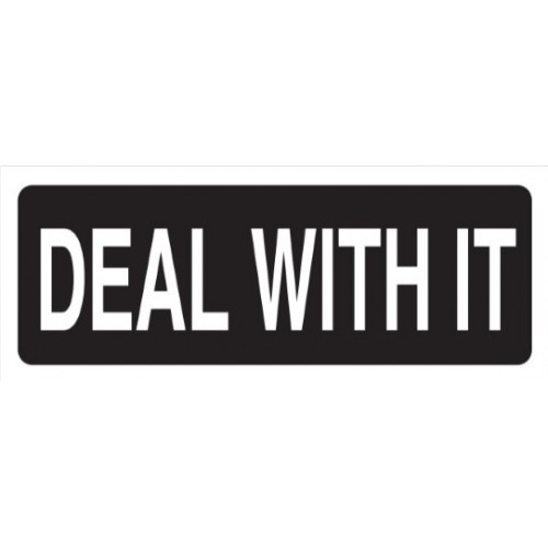 Helmet Sticker 'DEAL WITH IT' White Bold Letters on Black Background