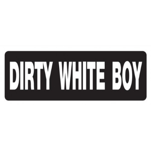 Helmet Sticker 'DIRTY WHITE BOY' White Bold Letters on Black Background