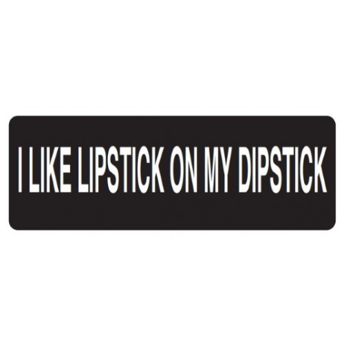 Helmet Sticker 'I LIKE LIPSTICK ON MY DIPSTICK' White Bold Letters on Black Background
