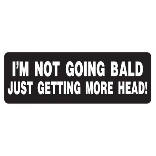 Helmet Sticker 'I'M NOT GOING BALD JUST GETTING MORE HEAD' White Bold Letters on Black Background