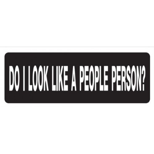 Helmet Sticker 'DO I LOOK LIKE A PEOPLE PERSON?' White Bold Letters on Black Background