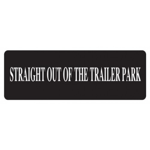 Helmet Sticker 'STRAIGHT OUT OF THE TRAILER PARK' White Bold Letters on Black Background